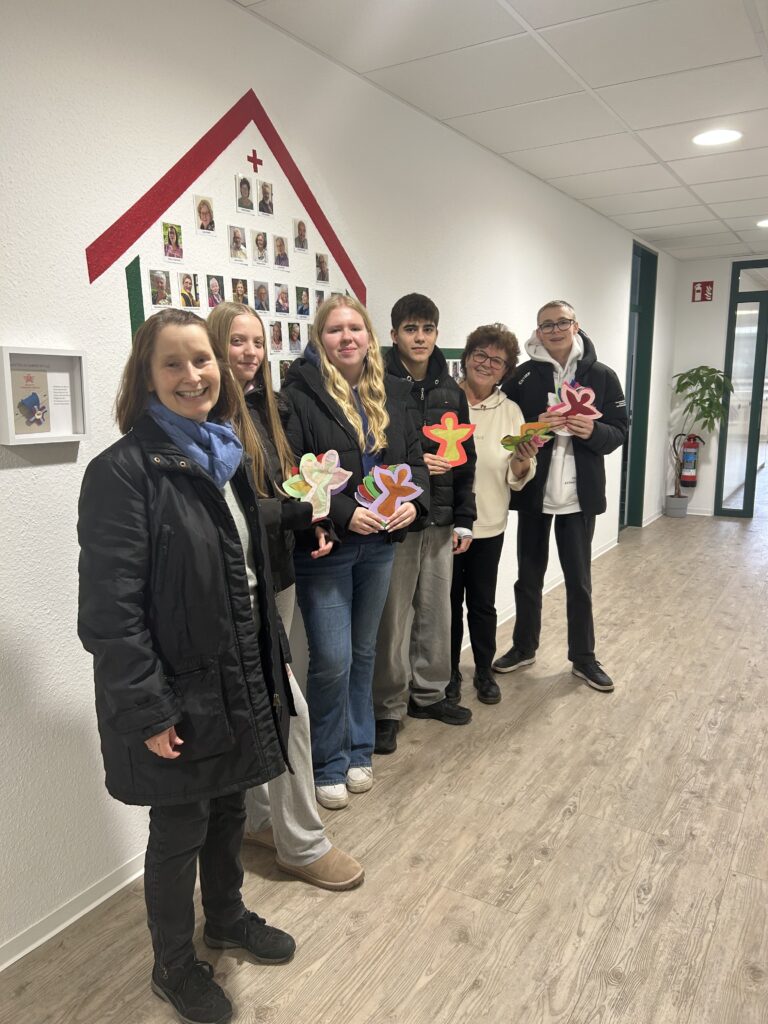 Die Jahrgangsstufe 6 des Abtei Gymnasiums in Duisburg Hamborn bastelten für unsere zu Begleiteten wieder Fensterengel, die wir sehr gerne weiterleiten. Natürlich werden auch einige in unserem Fenster im Büro Platz finden. Wir haben uns sehr gefreut das einige Schüler gemeinsam mit Pfarrerin Sabine Schmitz zur Übergabe gekommen sind. Herzlichen Dank.
