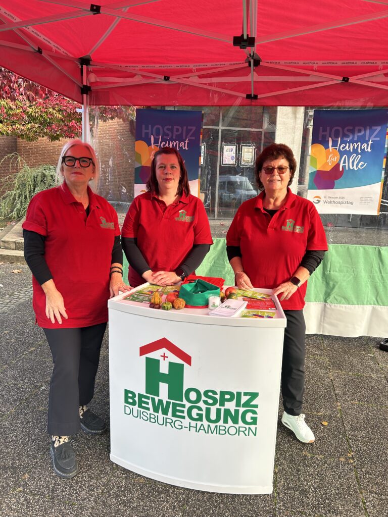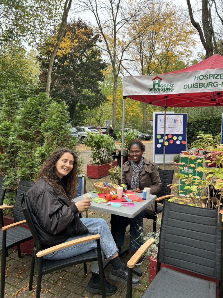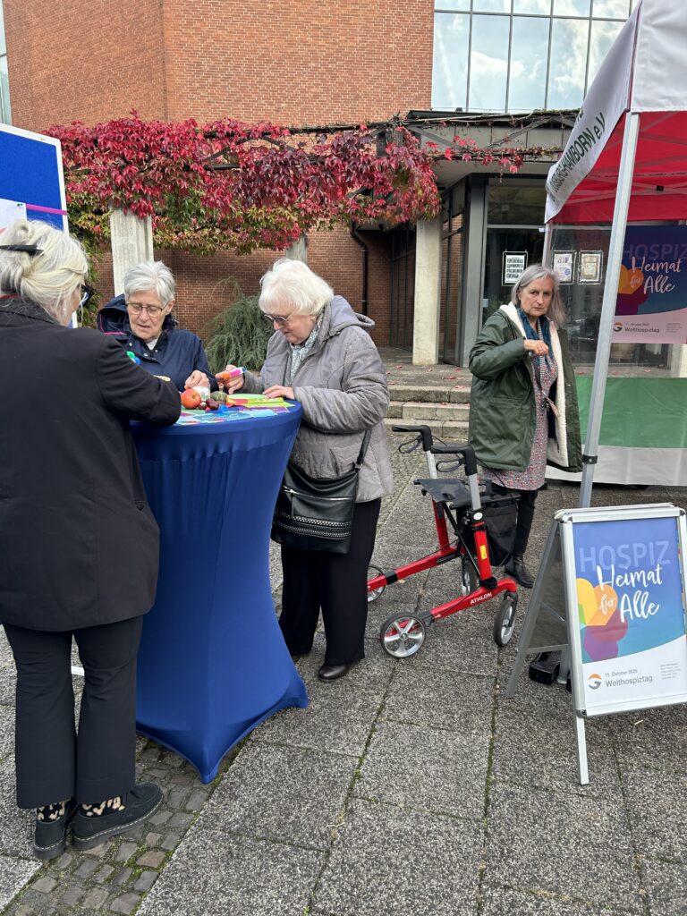 Im Rahmen der Duisburger Hospiz und Palliativ Woche und zum Welthospiztag waren wir an der ev. Kirchengemeinde Obermeiderich, Emilstraße und der kath. Herz Jesu Kirche in Neumühl am Schmidthorster Dom mit einem Info/ Aktionsstand zu finden . Heimat für Alle. Es waren zwei erfolgreiche Tage um auf unsere Hospizarbeit aufmerksam zu machen.